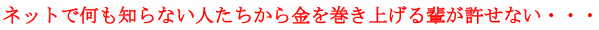 私の人生を変えてくれたネットビジネスを食い物にして、なおかつ何も知らない一般人をも食い物にする・・・そんな人たちを私はどうしても許すことができないのです。